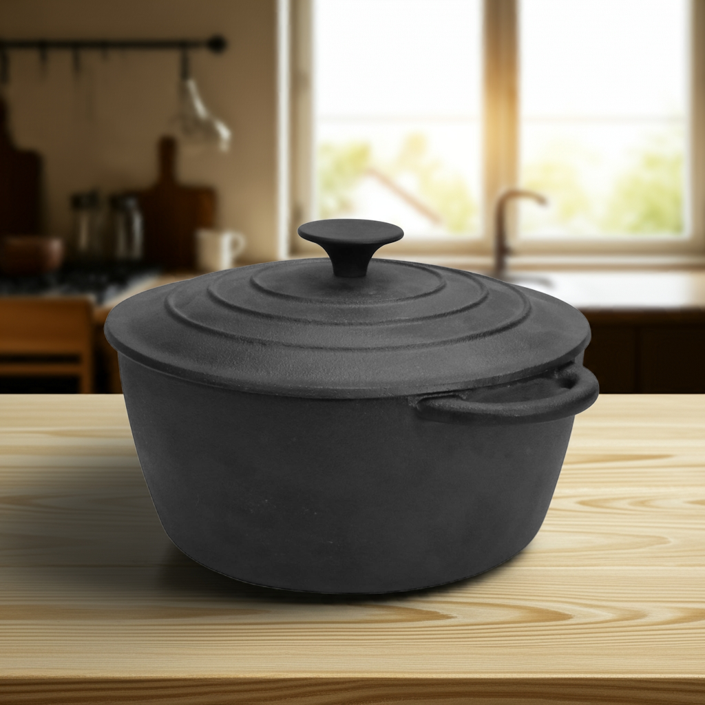 Deep Cast Iron Casserole Dish with Lid – Slow Cooking Essential